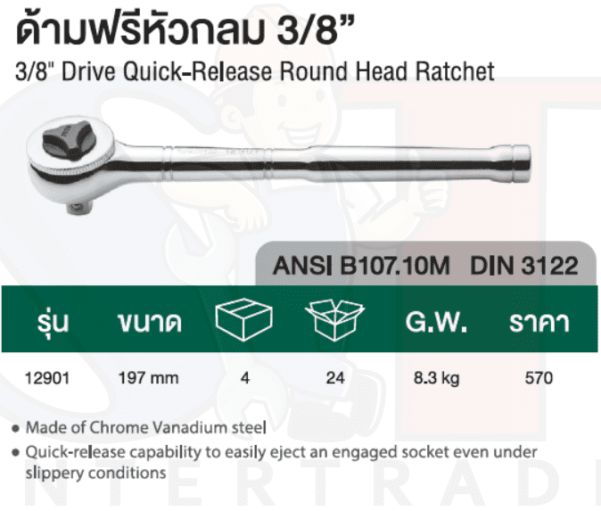 ด้ามฟรีหัวกลม 3/8″ SATA 12901