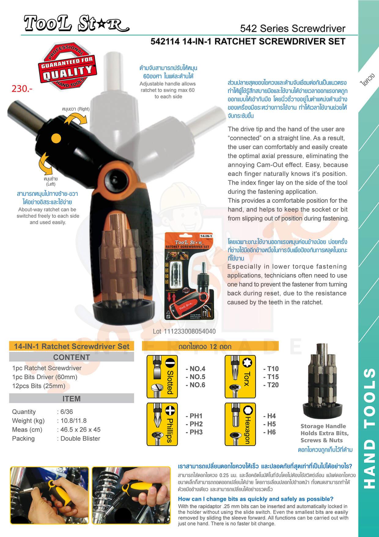 ด้ามไขควงปรับระดับพร้อมดอก (14 in 1) 542114 Tool Star