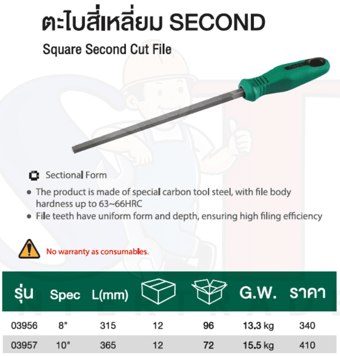 ตะไบสี่เหลี่ยม SECOND 8 ” SATA 03956