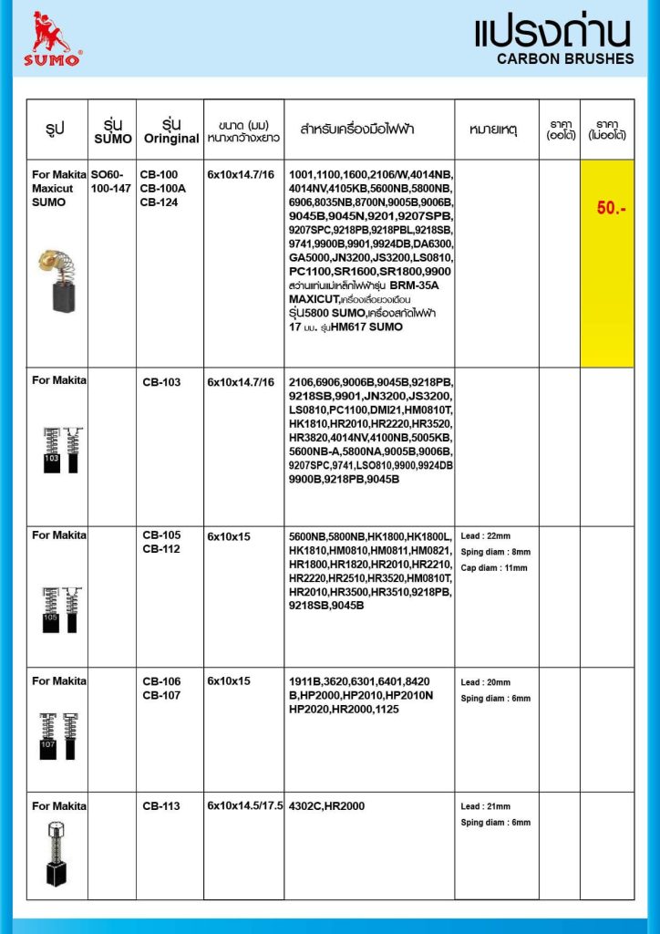 - สามารถใช้กับ เครื่อง SUMO : สว่านแม่เหล็กไฟฟ้า BRM-35A MAXICUT, เครื่องเลื่อยวงเดือน รุ่น 5800, เครื่องสกัดไฟฟ้า รุ่น 17mm รุ่น HM617