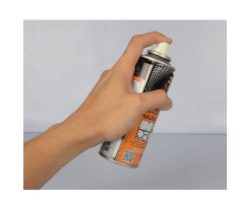 - เขย่ากระป๋องก่อนใช้ ตั้งกระป๋องให้ตรง ฉีดน้ำยาเพียงบางๆ