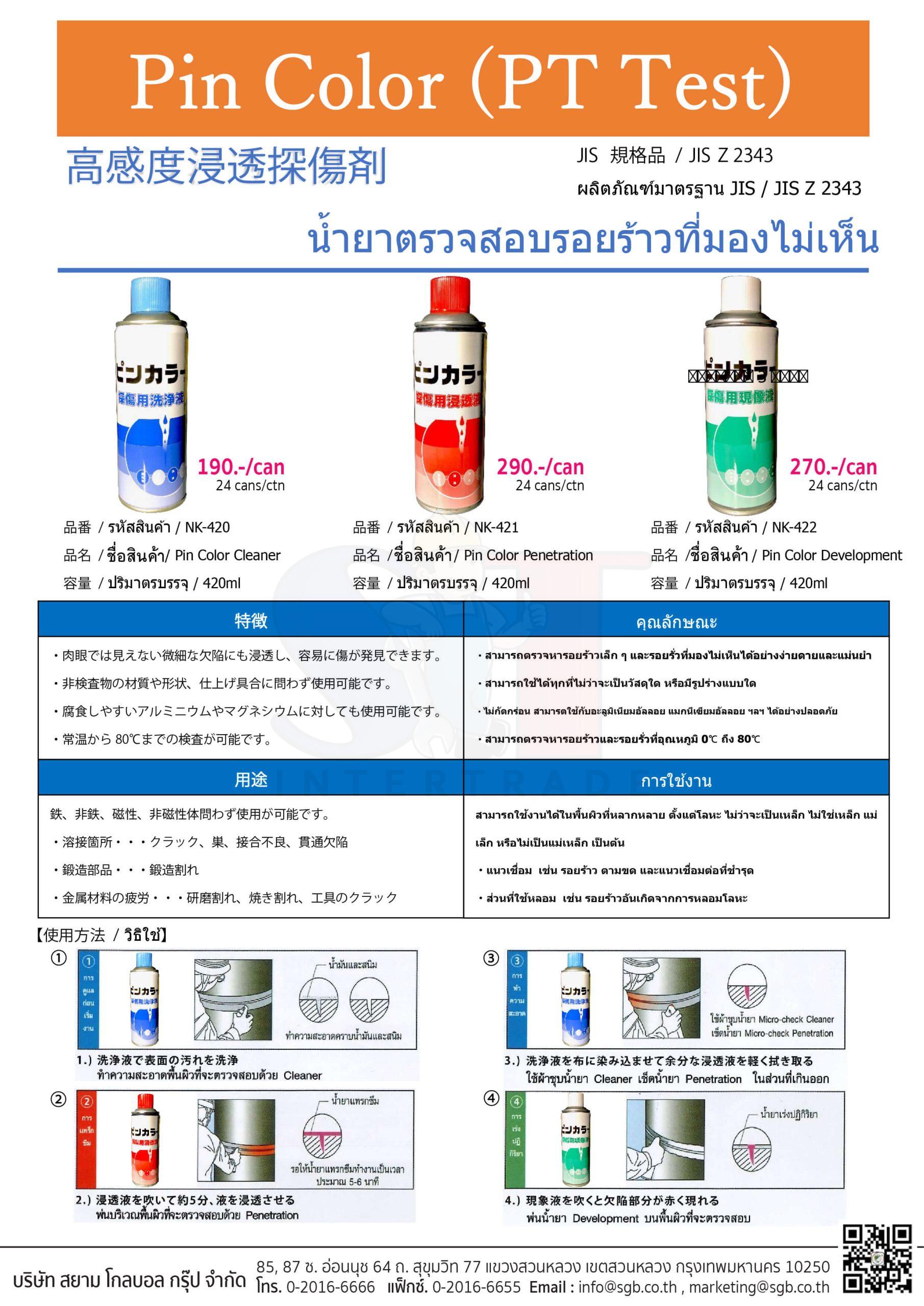 น้ำยาเช็ครอยร้าว / น้ำยาเช็ครอยรั่ว (color check) ประกอบด้วยน้ำยาหลัก 3 ชนิด
