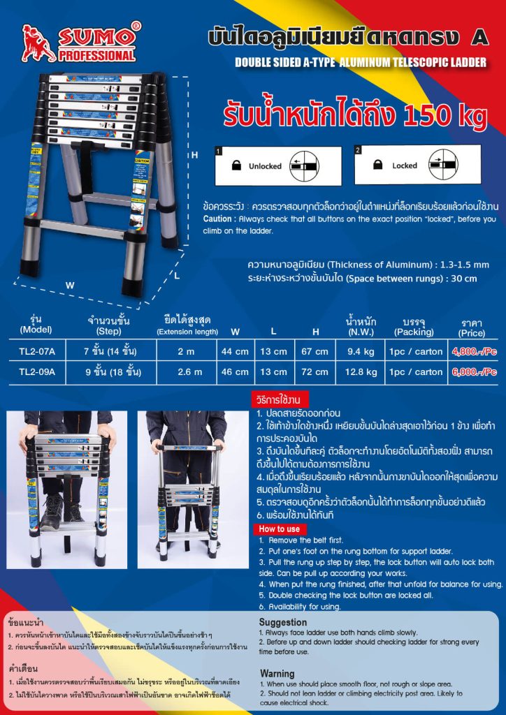 - มีระบบ Auto lock เมื่อปรับบันไดแต่ละขั้น