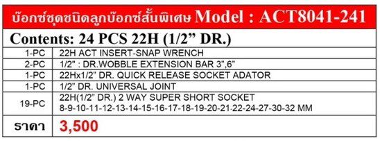 บ๊อกซ์ชุดชนิดลูกบ๊อกซ์สั้นพิเศษ Model – ACT8041-241