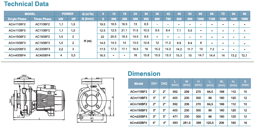 – ปั๊มหอยโข่งหน้าแปลน 2 นิ้ว LEO รุ่น ACM110BF2 (1.5 Hp.)