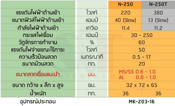 - มีปุ่มป้อนลวดอิสระและสามารถปรับความเร็วป้อนลวดเชื่อมแบบต่อเนื่อง