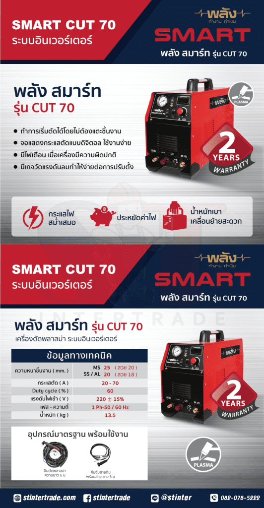 พลัง SMART CUT 70 เครื่องตัดพลาสม่าอินเวอร์เตอร์ 220V
