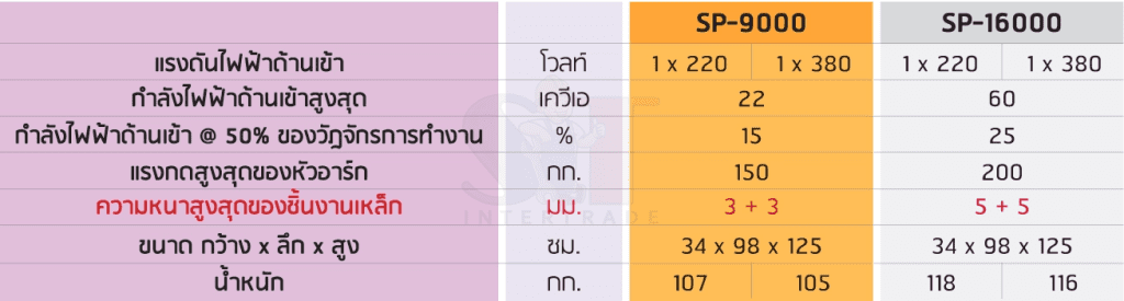 ความหนาสูงสุดของชิ้นงาน 3+3 มม. (รุ่น 9000)
