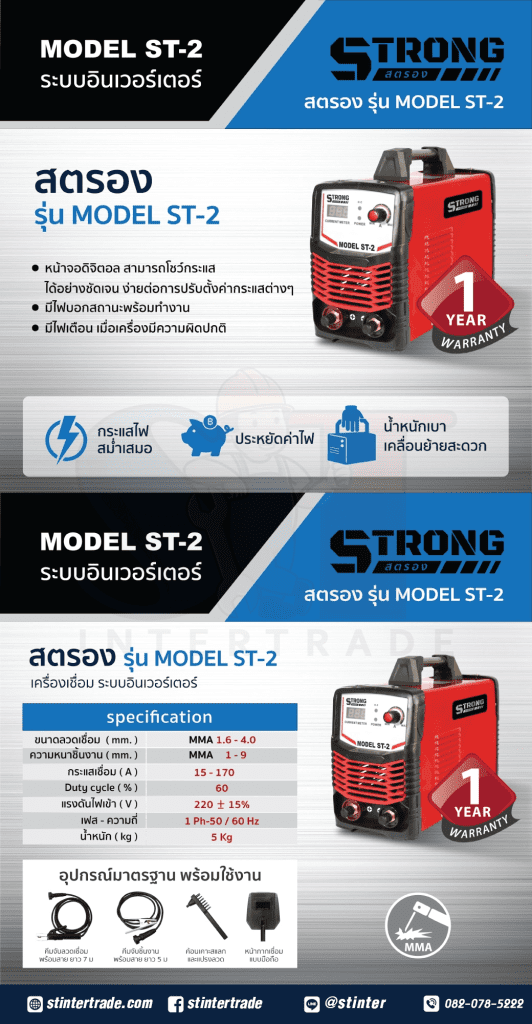 พลัง STRONG ST-2 เครื่องเชื่อมอินเวอร์เตอร์ MMA 220V