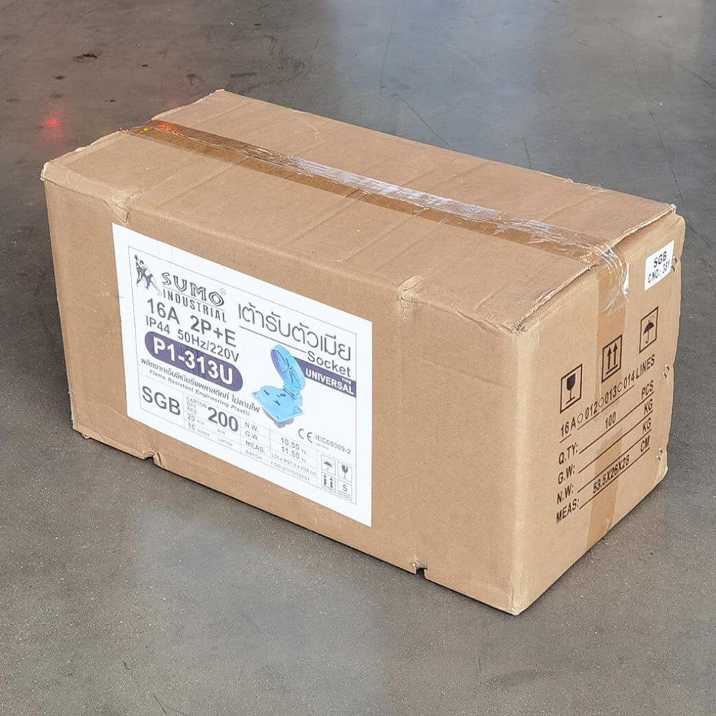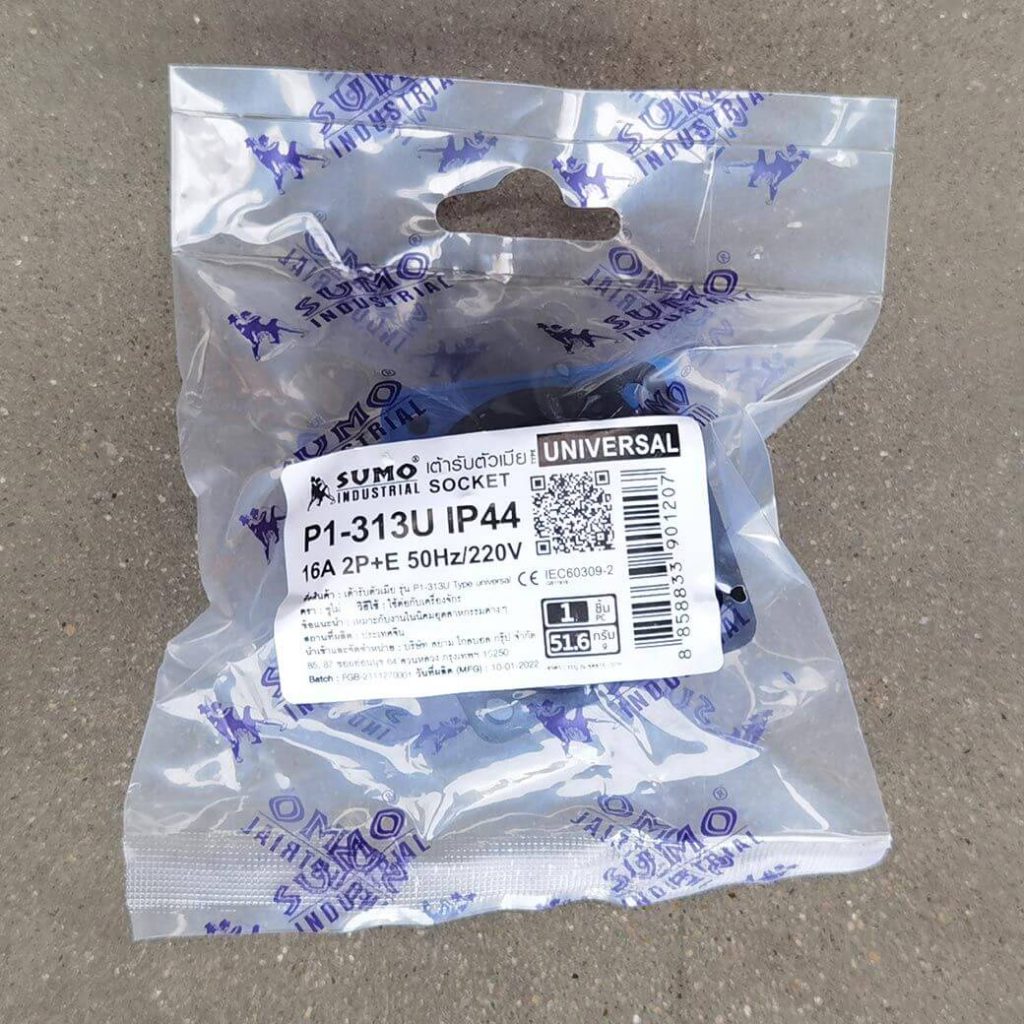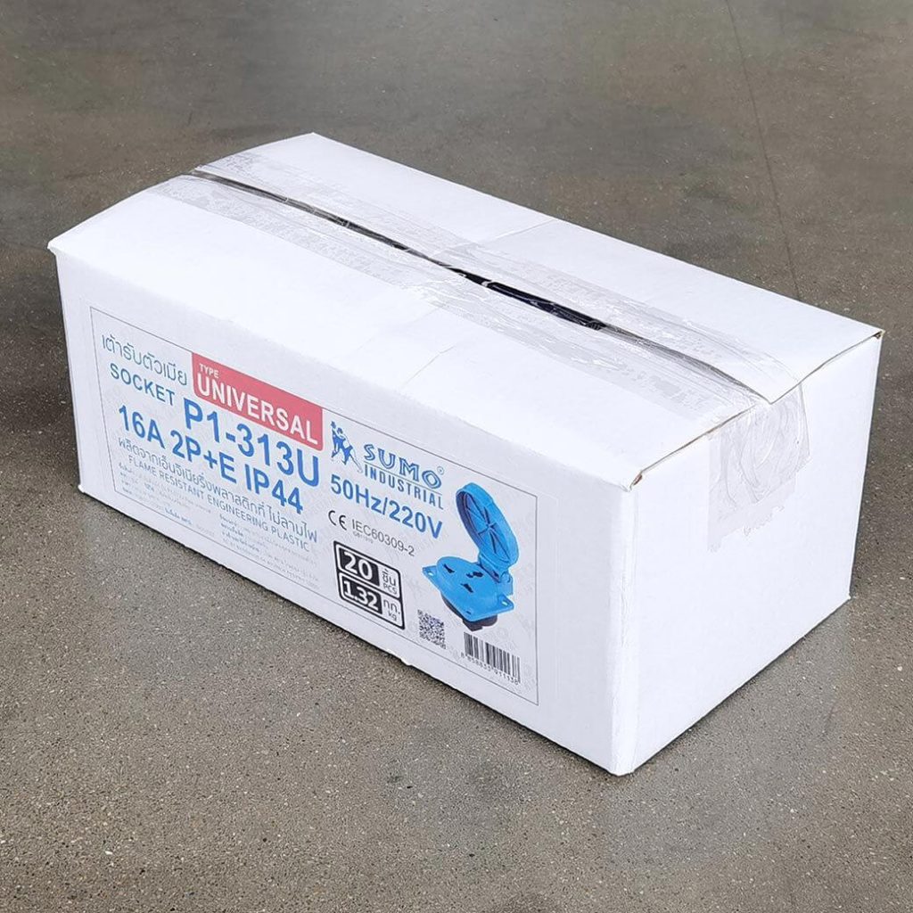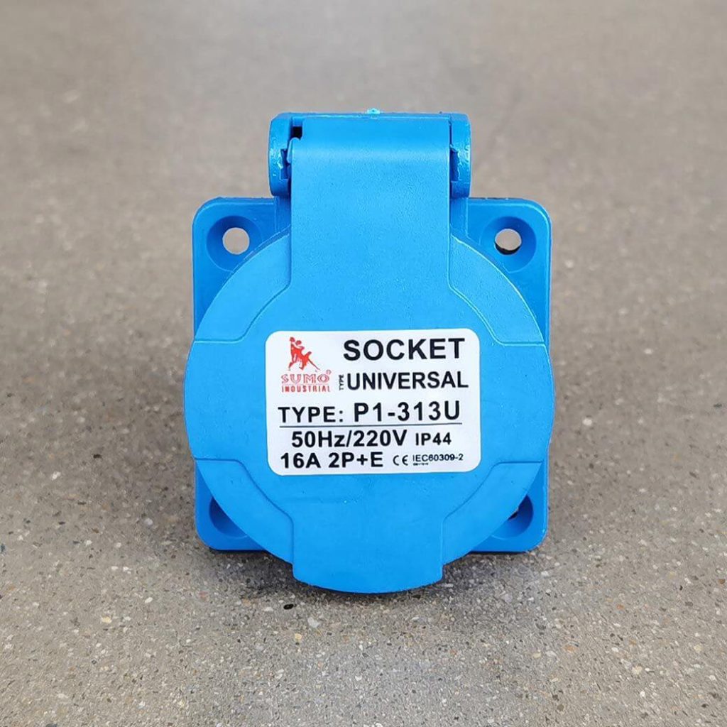 พาวเวอร์ปลั๊ก 2P+E 16A 220V Single Phase ตัวเมีย IP44 Type Universal ใช้ในงานอุตสาหกรรม ทนความร้อนไม่ลามไฟ