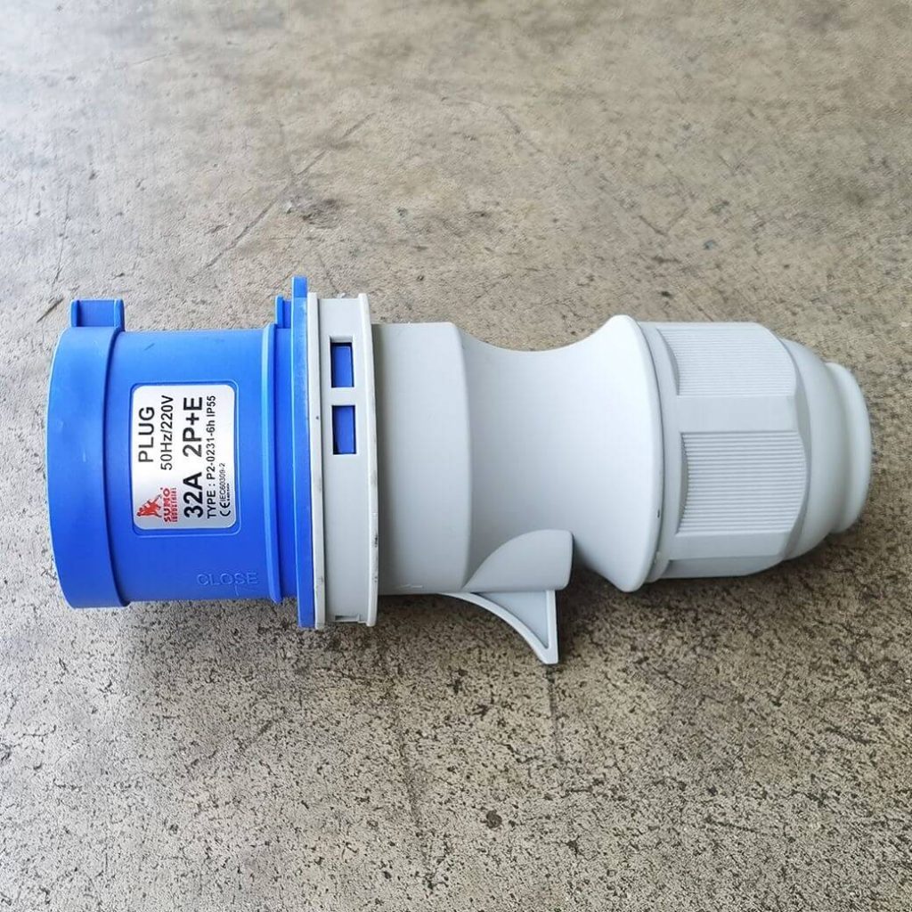พาวเวอร์ปลั๊ก 2P+E 32A 220V Single Phase ตัวเมีย IP44 ใช้ในงานอุตสาหกรรม ทนความร้อนไม่ลามไฟ