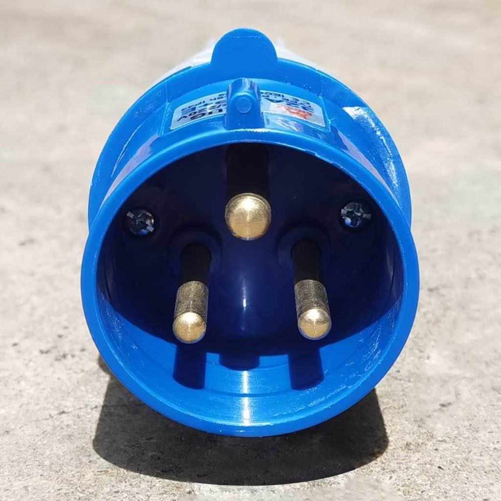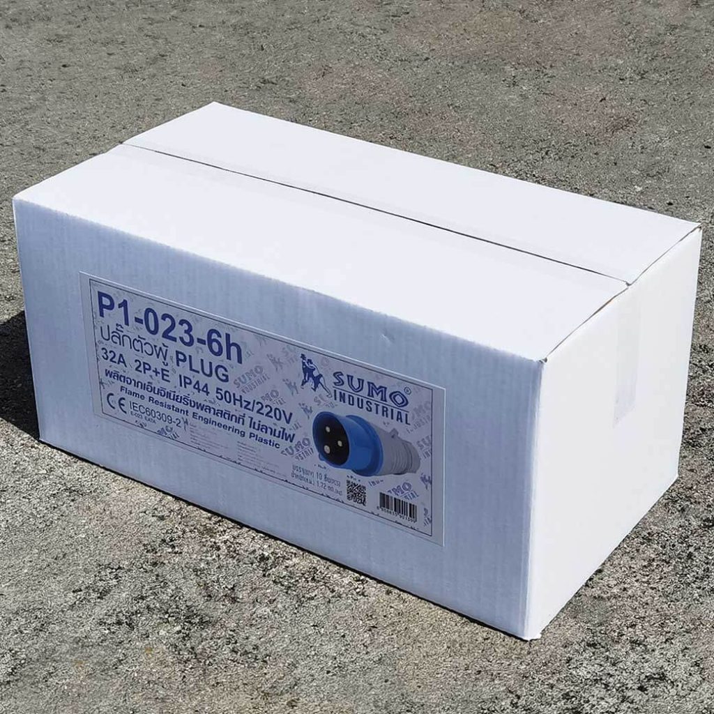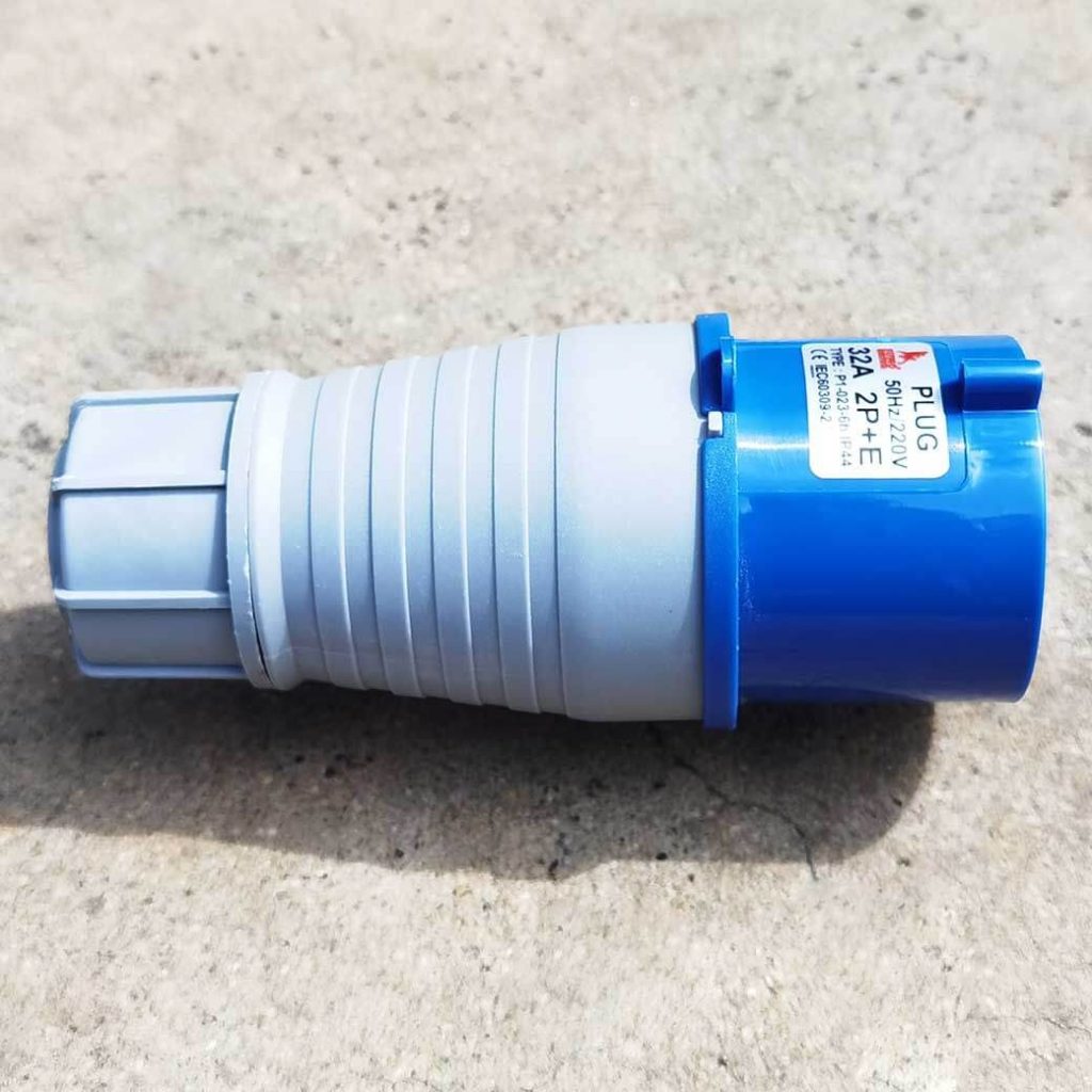 พาวเวอร์ปลั๊ก 2P+E 32A 220V Single Phase ตัวผู้ IP44 ใช้ในงานอุตสาหกรรม ทนความร้อนไม่ลามไฟ