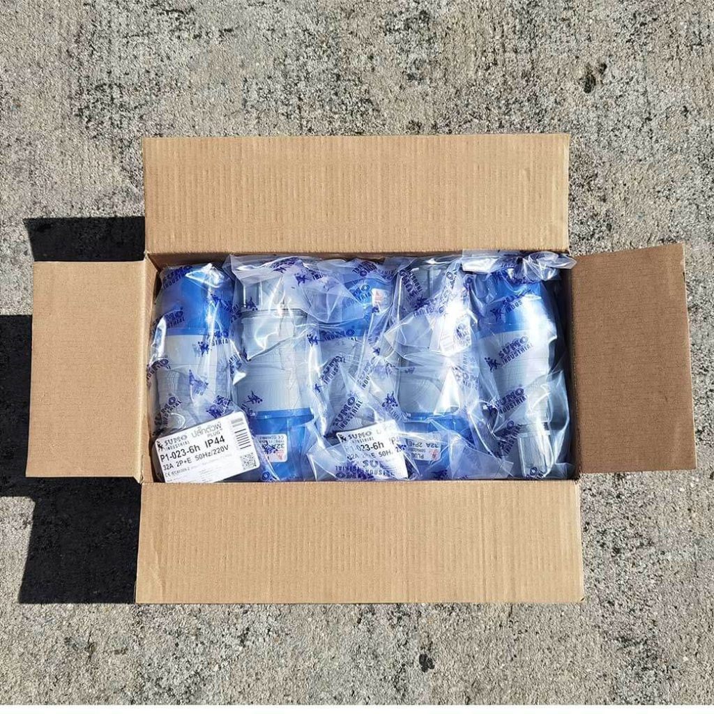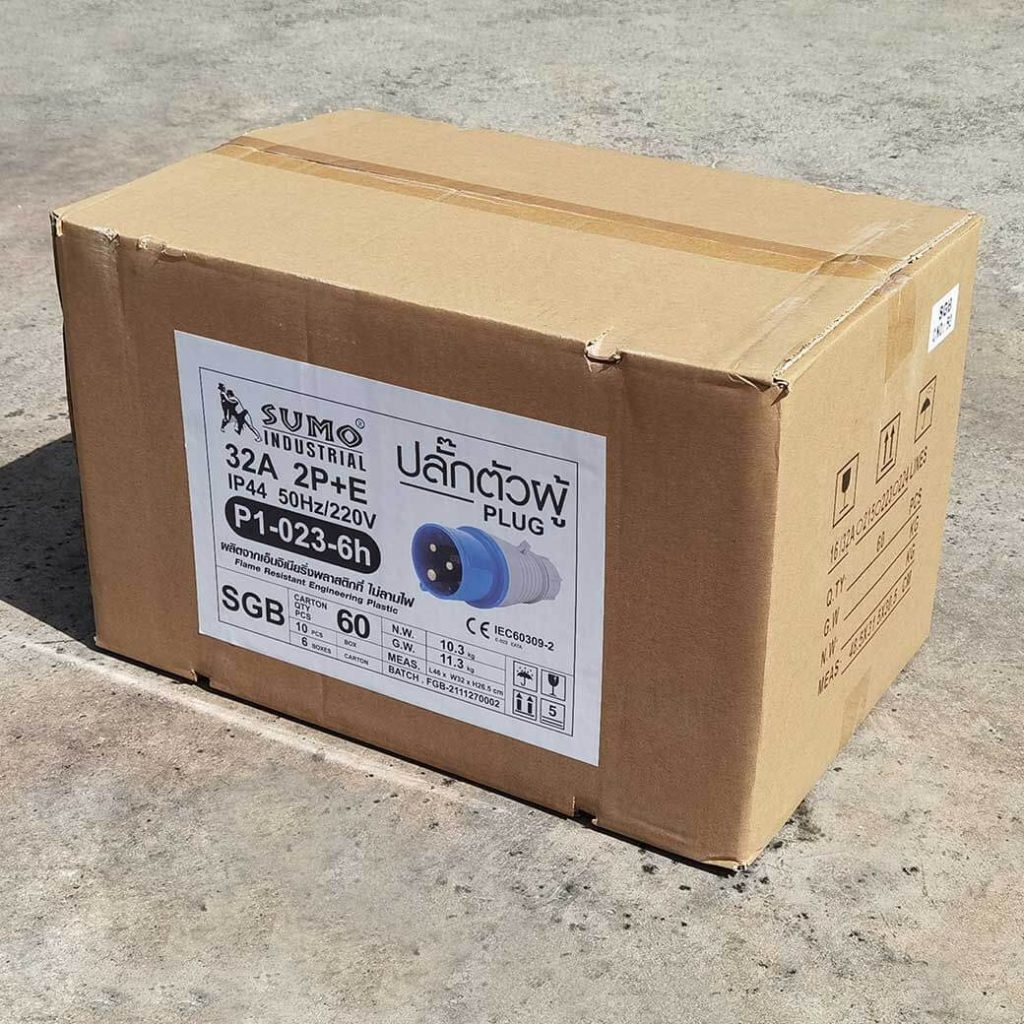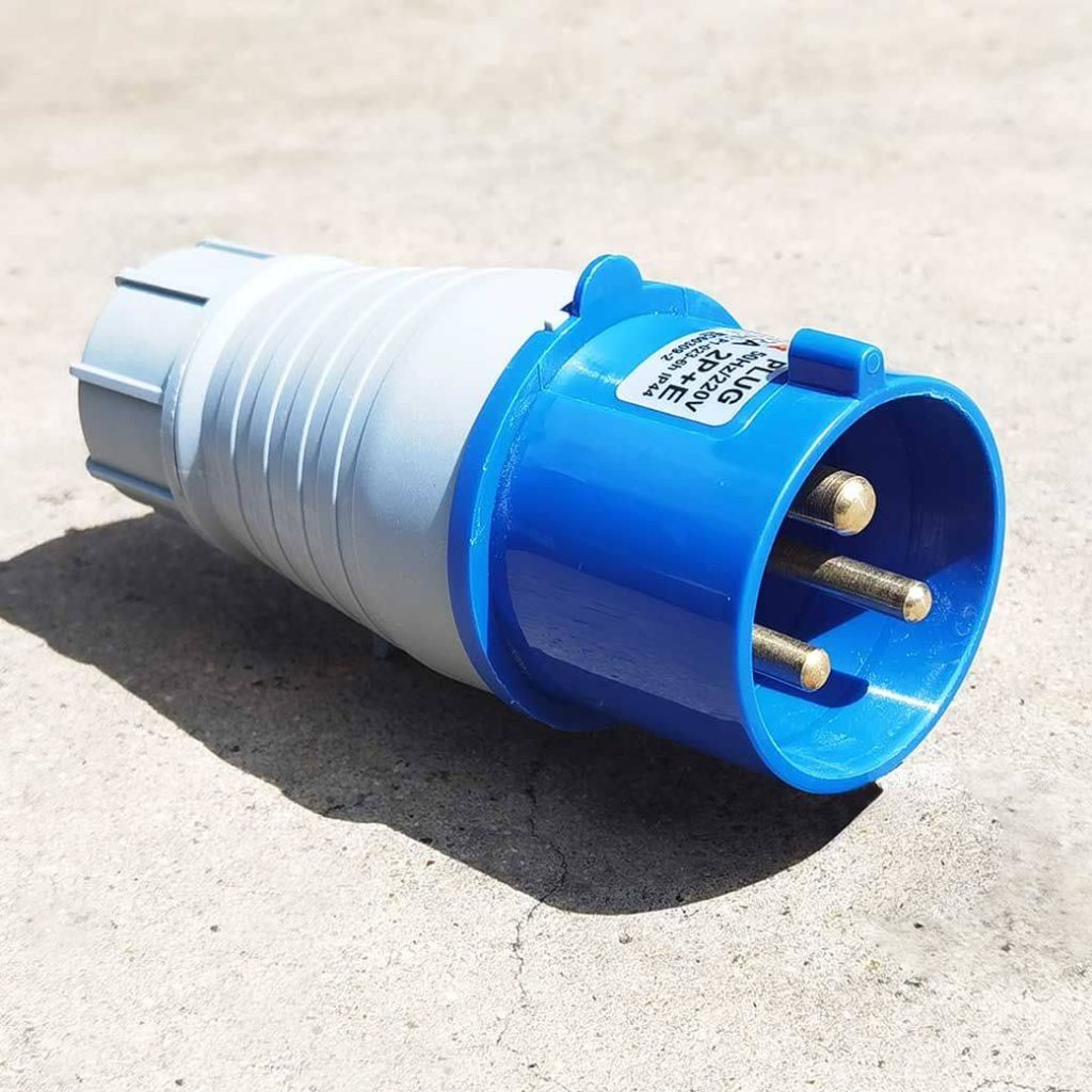 พาวเวอร์ปลั๊ก 2P+E 32A 220V Single Phase ตัวผู้ IP44 ใช้ในงานอุตสาหกรรม ทนความร้อนไม่ลามไฟ