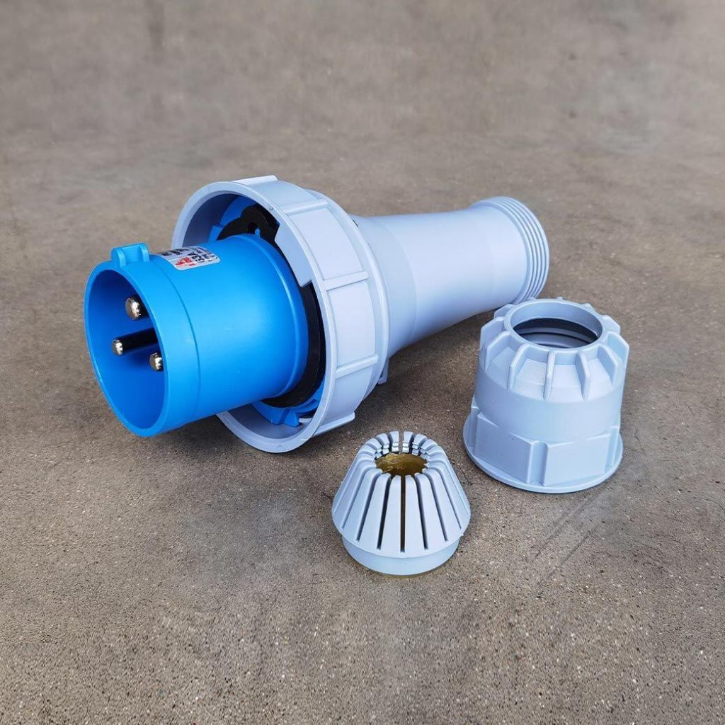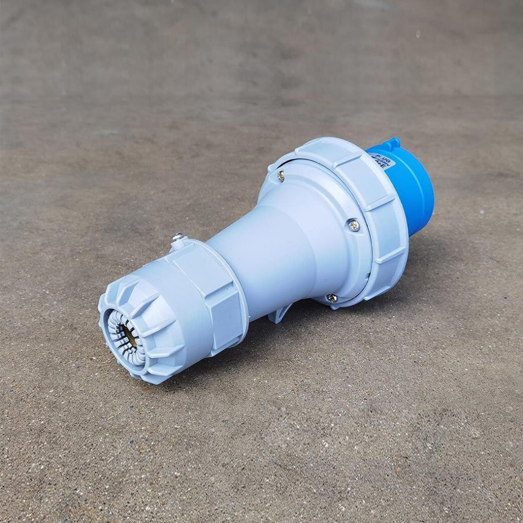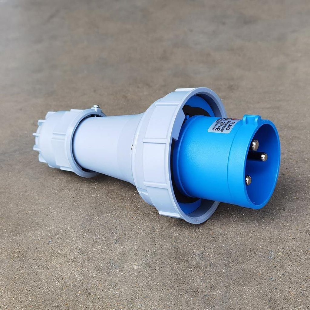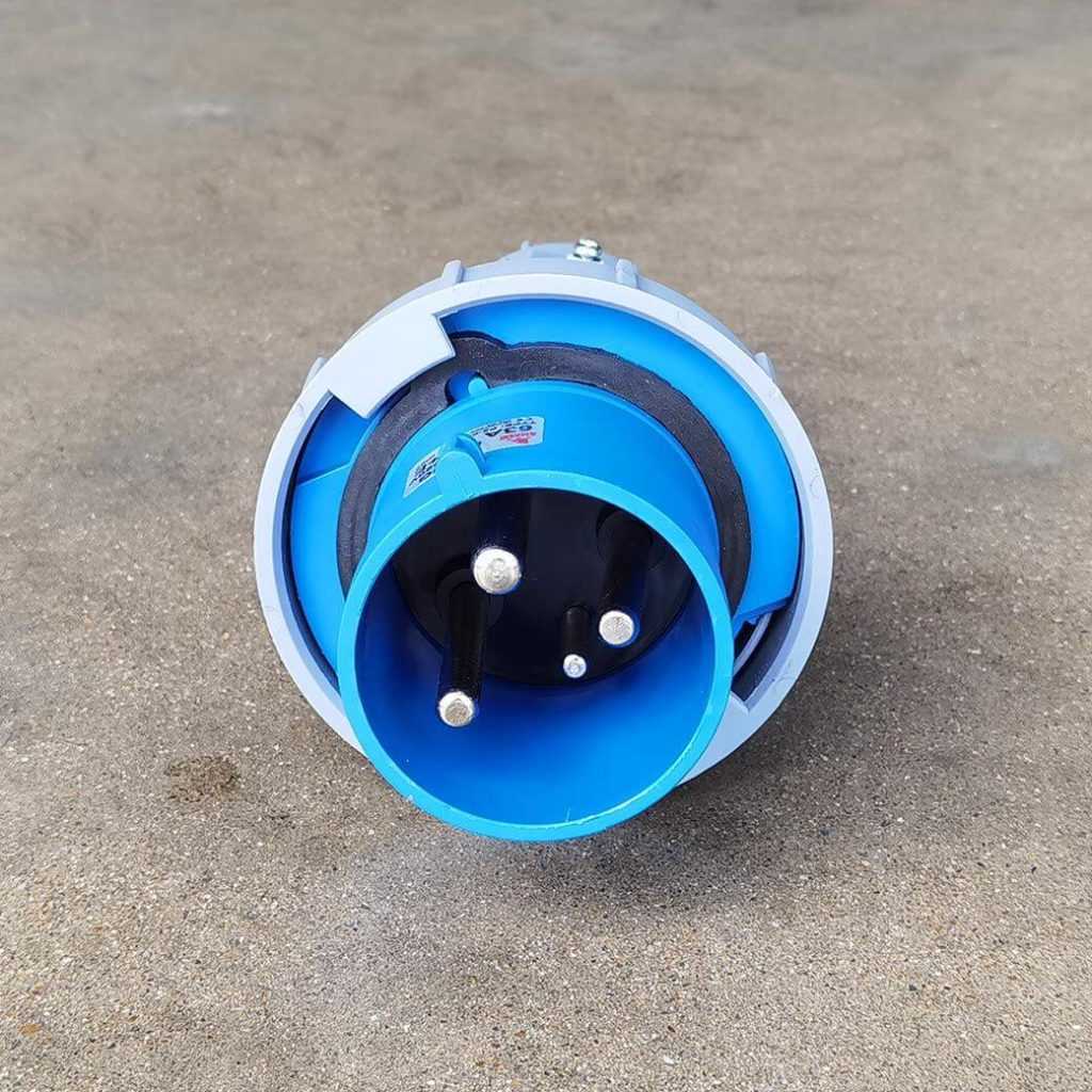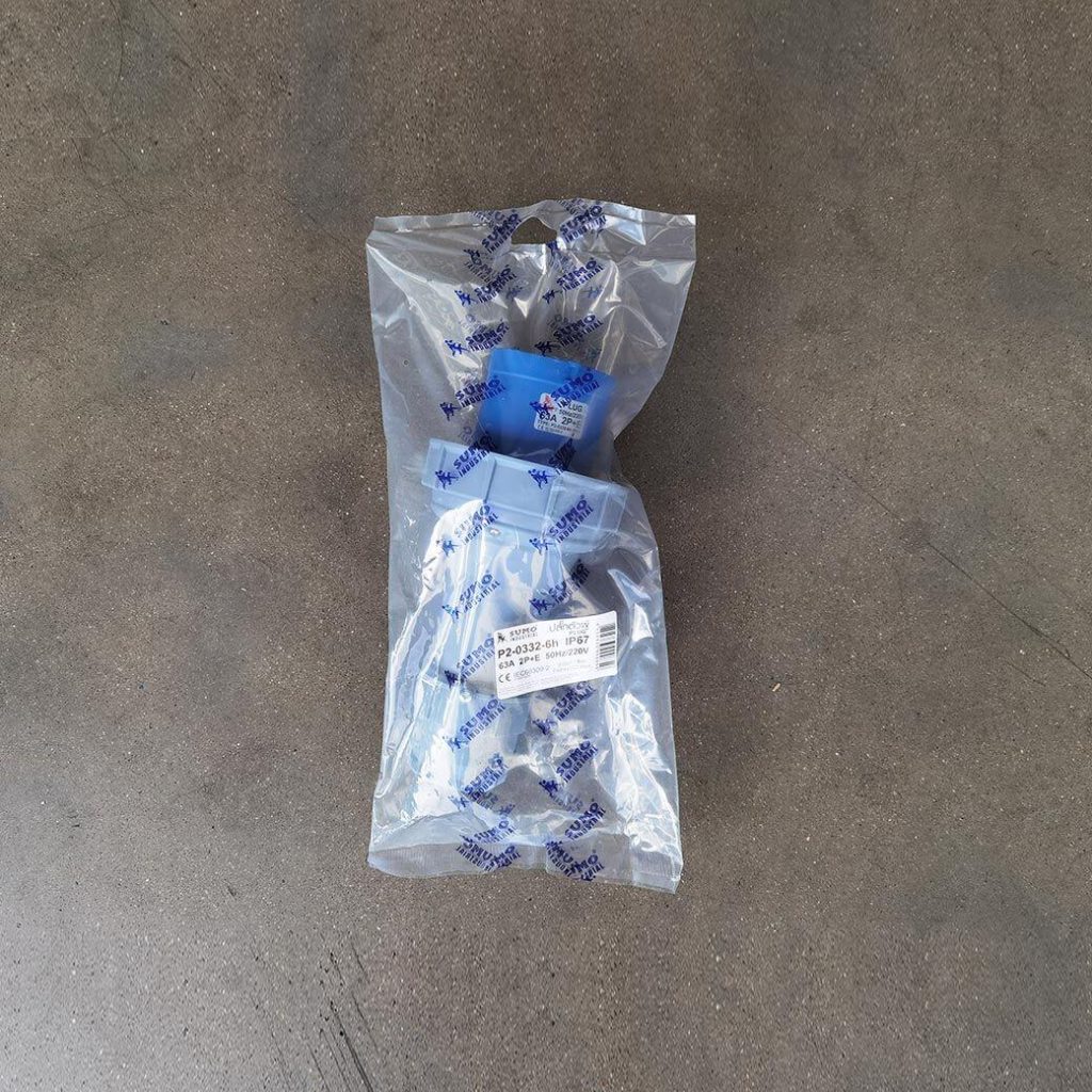 พาวเวอร์ปลั๊ก 2P+E 63A 220V Single Phase ตัวผู้ IP67 ใช้ในงานอุตสาหกรรม ทนความร้อนไม่ลามไฟ