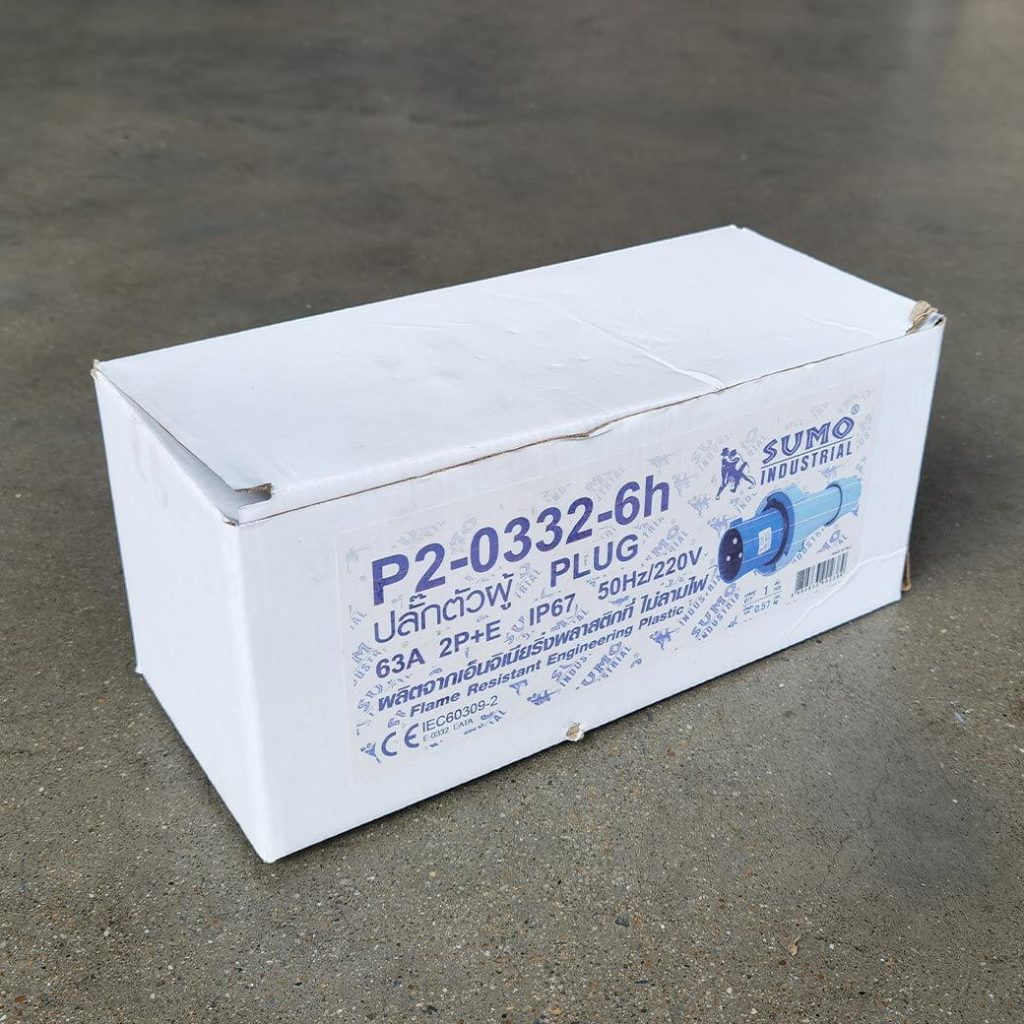 พาวเวอร์ปลั๊ก 2สาย 3ขา 63A รุ่น P2-0332-6h (ตัวผู้) SUMO