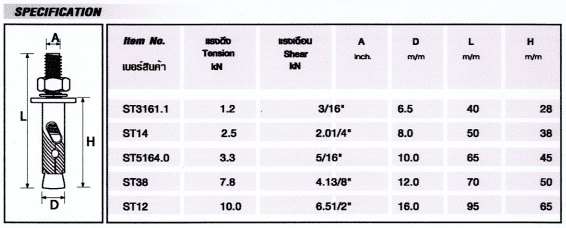 Stud Bolt : JIS G3507 SWARCH BA or 10A C.H.Q. Expansion Sleeve : JIS G 3141 SPCC Flat Washer : JIS G 3141 SPCC Spring Washer : JIS G 4401-SK5 Nut : JIS G 3507 SWRCH 8A OR 10A C.H.Q. |