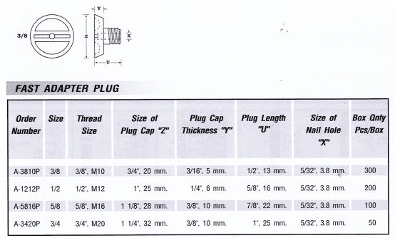 1. สอดตะปูเข้าไปในรูของฟาสต์อะแดปเตอร์ปลั๊ก แล้วตอกตะปูติดกับไม้แบบตรงตำแหน่งที่ได้กำหนดไว้แล้ว | 2. เอาฟาสต์คอนกรีอินเสริตขันติดกับปลั๊กอะแดปเตอร์ให้แน่น | |