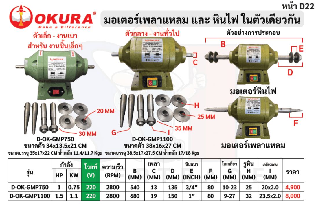 มอเตอร์เพลาแหลม รุ่น D-OK-GMP1100