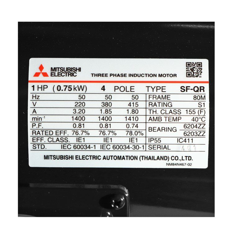 มอเตอร์ MITSUBISHI SF-QR กำลัง 1 แรงม้า (0.75 กิโลวัตต์)