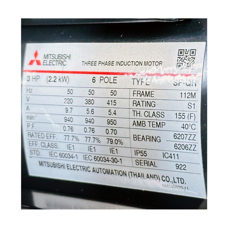 มอเตอร์ MITSUBISHI SF-QR กำลัง 2 แรงม้า (1.5 กิโลวัตต์)