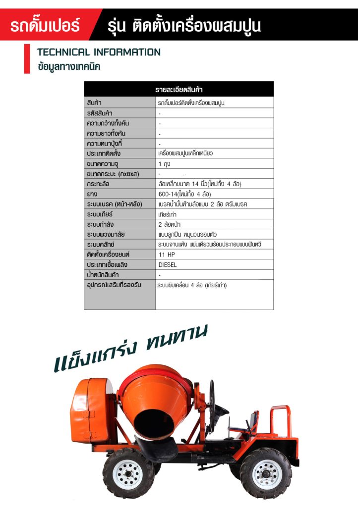 รถดั้มเปอร์ ติดตั้งเครื่องผสมปูน (ไม่รวมเครื่องยนต์)