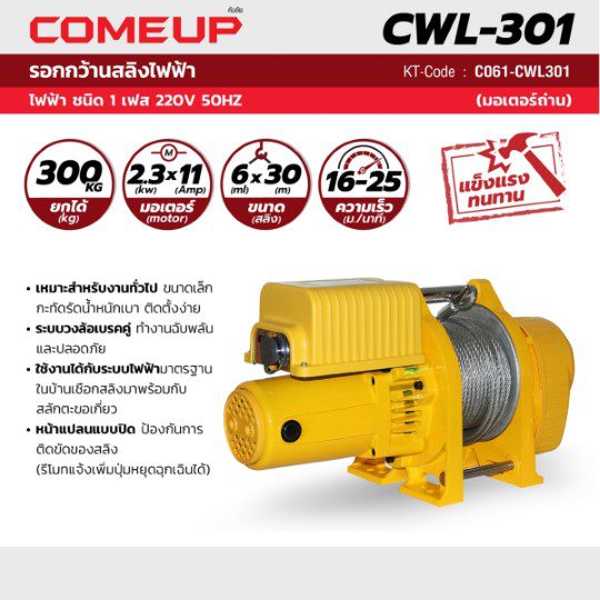 รอกกว้านสลิง CWL-301 (มอเตอร์ถ่าน) ยี่ห้อCOME-UP