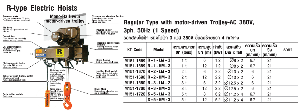 รอกไฟฟ้า R-1-HM (1TX12M+วิ่ง)