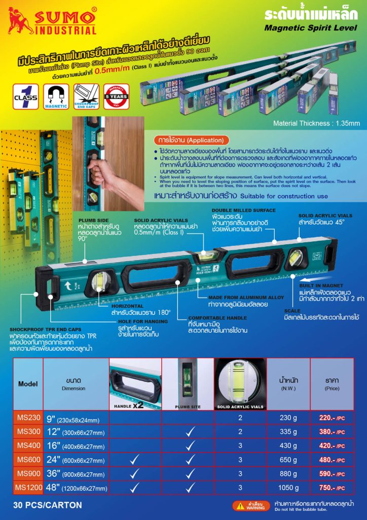 ระดับน้ำแม่เหล็ก (มีหน้าต่าง) 48 นิ้ว รุ่น MS1200 SUMO