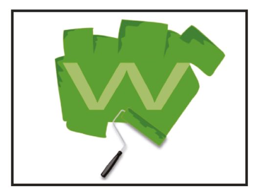 Test the roller with soak the color and paint it as the character “W”. Roll over and over for paint spread out and equal. be careful don’t roll too quickly. then paint on the surface with roller by start with the set part to the dry part.