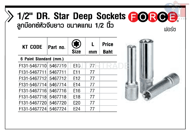ลูกบ๊อกซ์หัวจีบยาว 1/2″ E10 รหัสสินค้า : F131-5467710