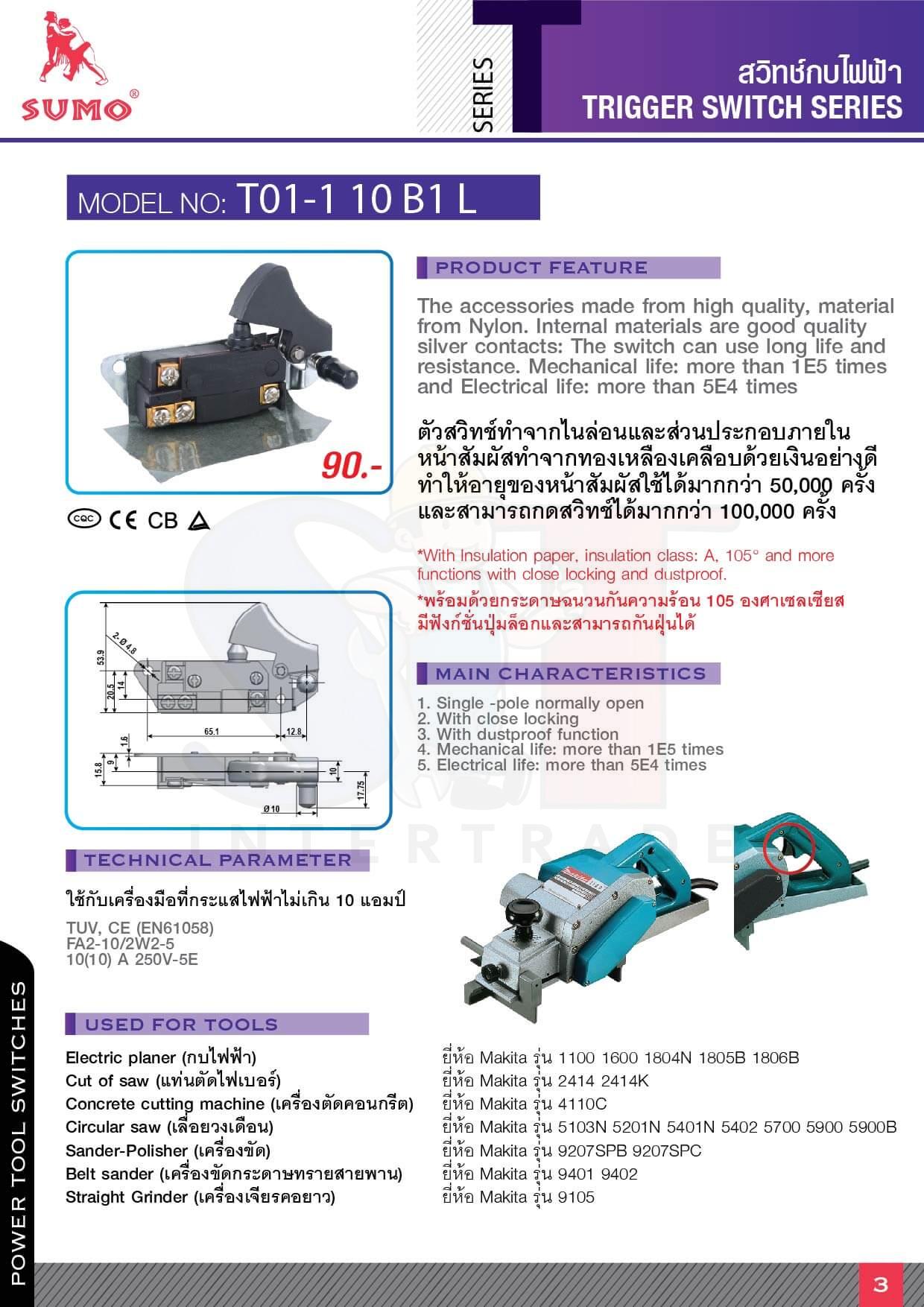 - ตัวสวิทช์ทำจากไนล่อนและส่วนประกอบภายในหน้าสัมผัสทำจากทองเหลืองเคลือบด้วยเงินอย่างดีทำให้อายุของหน้าสัมผัสใช้ได้มากกว่า50,000ครั้งและสามารถกดสวิทซ์ได้มากกว่า100,000ครั้ง