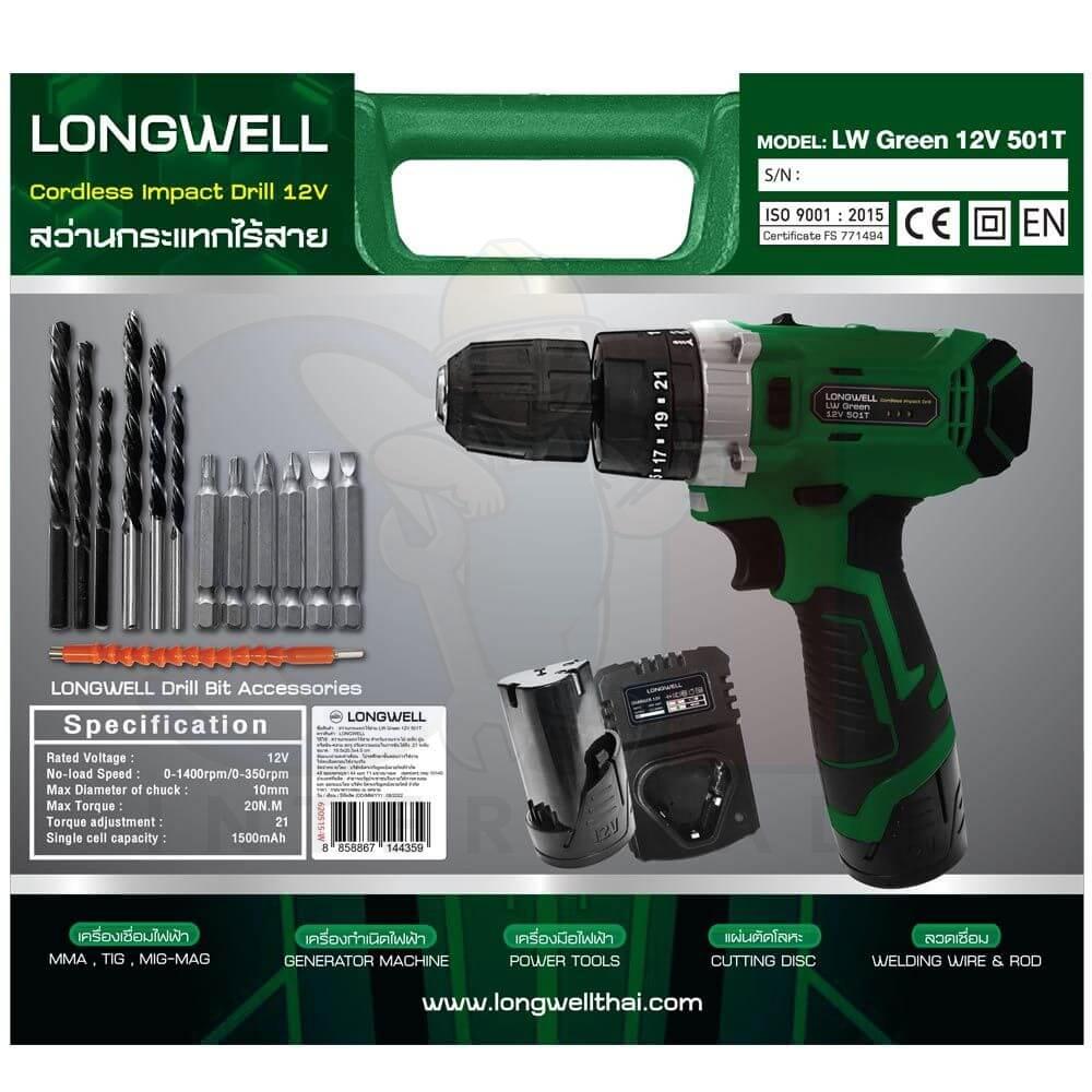 สว่านกระแทกไร้สาย LW Green 12V 501T