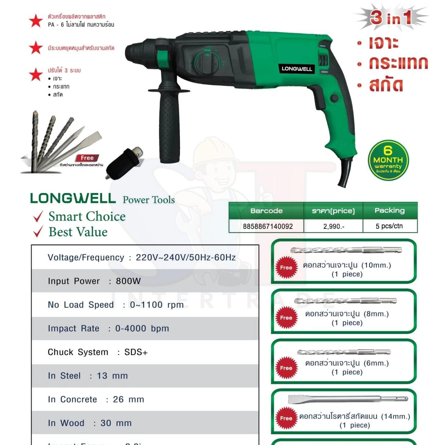 สว่านโรตารี่ LONGWELL Z14-2601 DFR 800 วัตต์