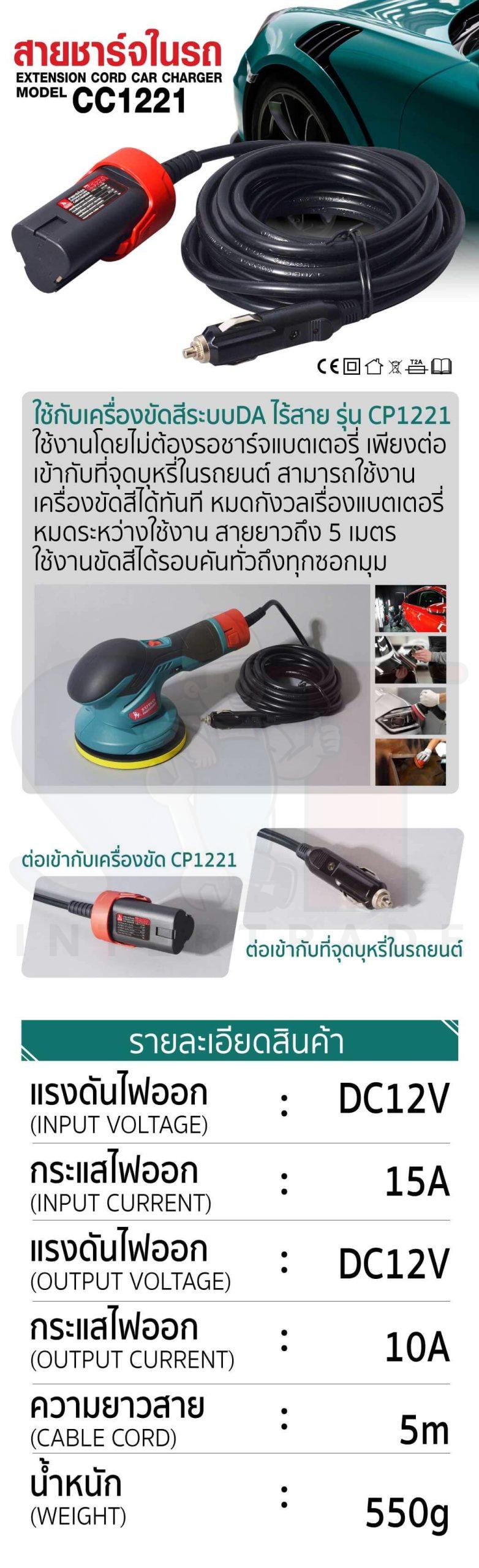 สายชาร์จในรถ สำหรับเครื่องขัดสีรถยนต์ รุ่น CC1221