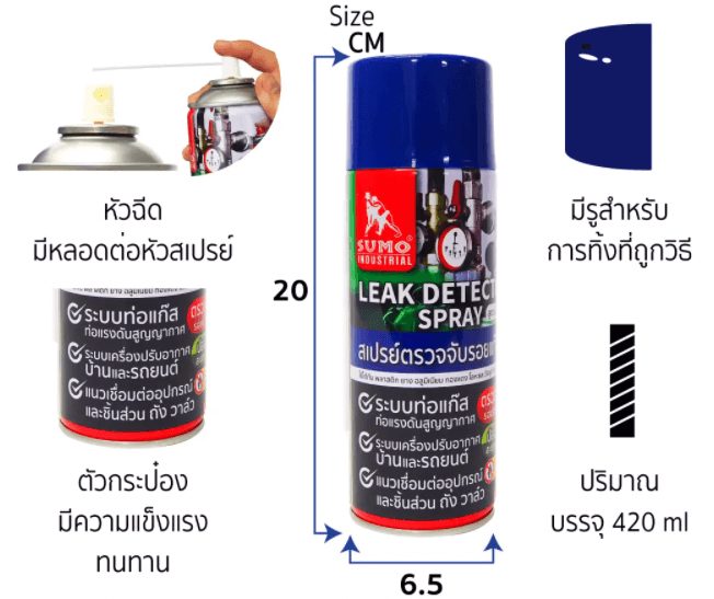 - สเปรย์เช็ครอยรั่ว ตรวจจับรอยรั่วแก๊ส แม่นยำ สะดวก รวดเร็ว ออกแบบมาเพื่อตรวจจับการรั่วไหลของแก๊ส