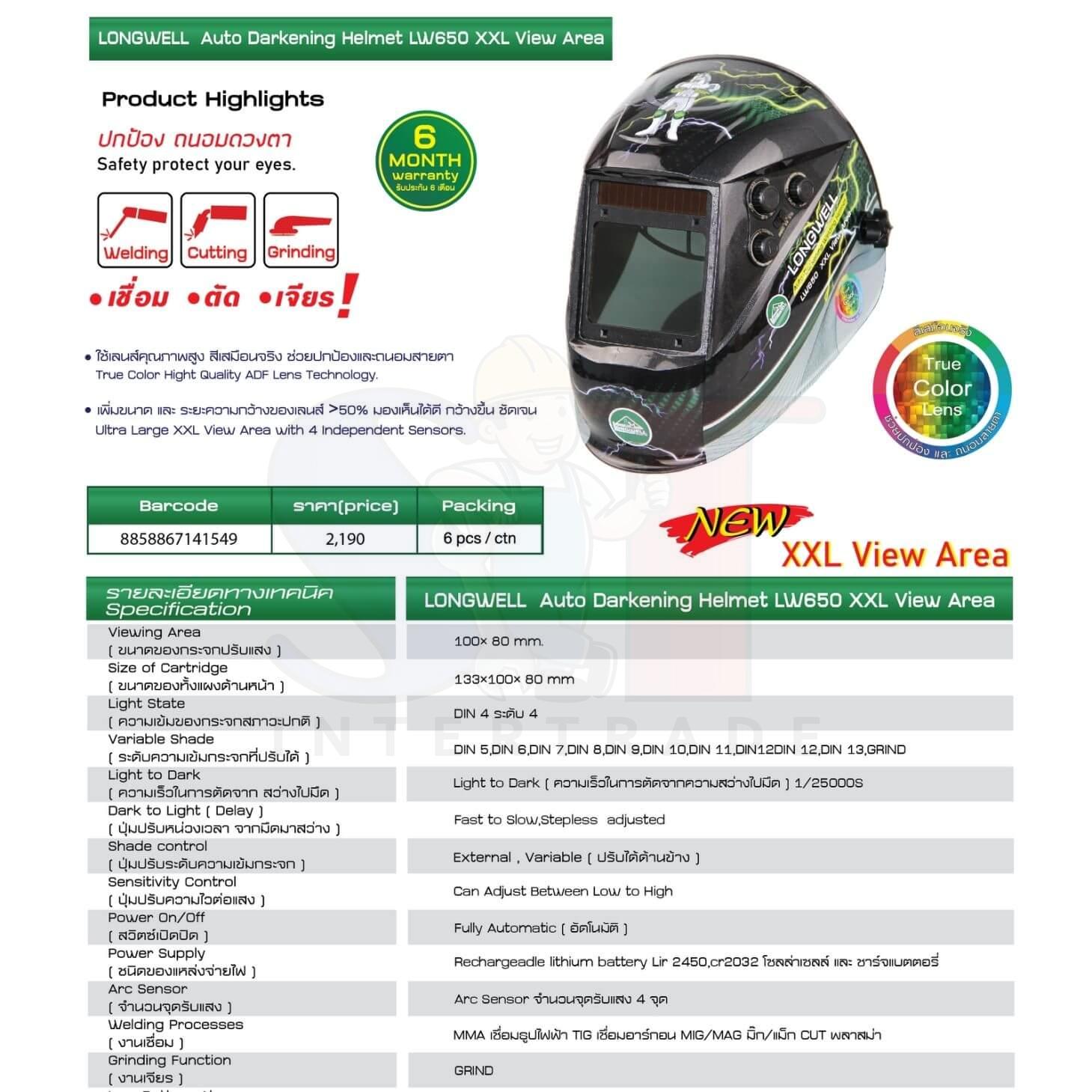 หน้ากากปรับแสงอัตโนมัติ LW650 XXL View Area