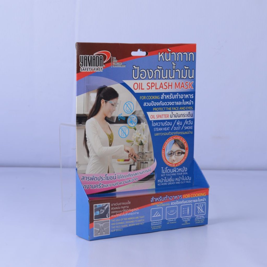 - ใช้ป้องกันน้ำมันร้อนกระเด็นใส่ใบหน้าและดวงตา และรวมถึงควันที่ทำร้ายผิวหน้าของคุณขณะทำอาหาร