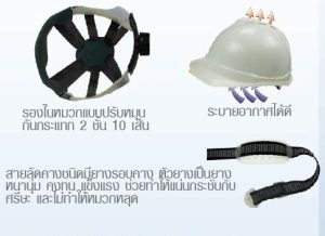 - มีช่องข้างหมวก สำหรับใช้ร่วมอุปกรณ์ อาทิ ที่ครอบหู หน้ากากเชื่อมโลหะ และชุดกระบังหน้า