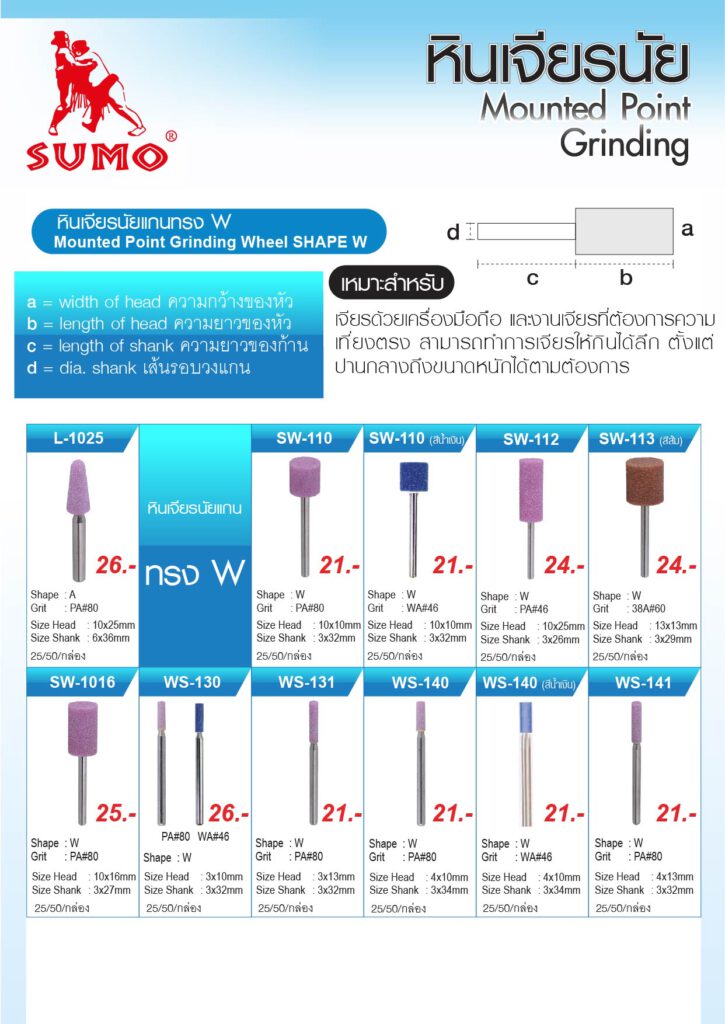 - หินเจียรนัยแกนทรง W Mounted Point Grinding Wheel SHAPE W