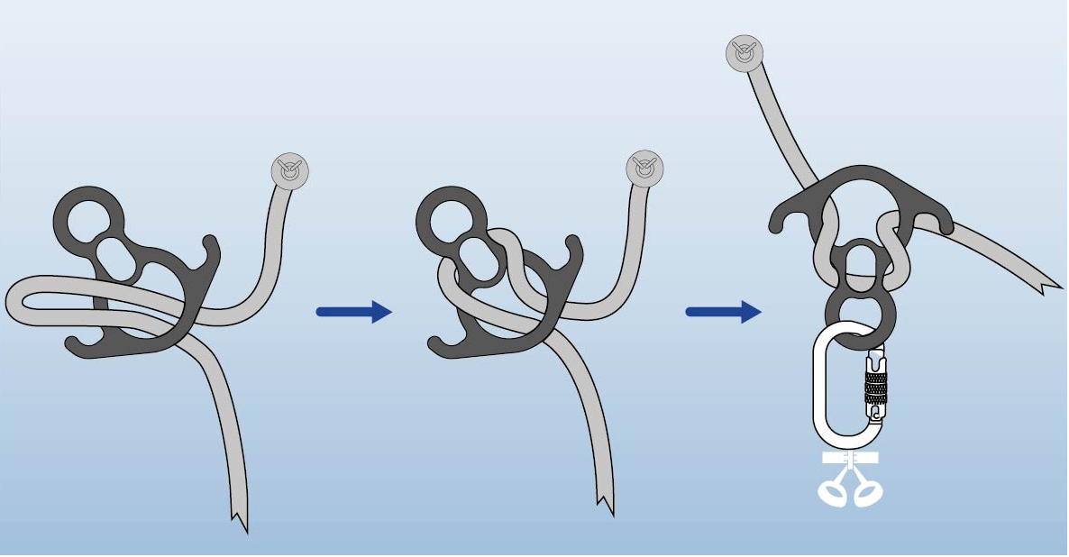 - ควบคุมการโรยตัวลงเส้นเชือกจากที่สูง โดยรูเล็กใช้สำหรับคล้องคาราบิเนอร์ และรูใหญ่ใช้สำหรับสอดเชือกเข้าจากด้านบน เพื่อให้เกิดแรงเสียดทานจากการงอตัวขอเชือกในขณะที่เชือกพาดผ่านโลหะ เพื่อช่วยชะลอความเร็ว