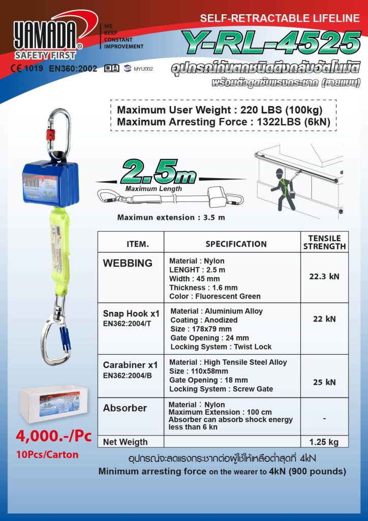 อุปกรณ์กันตกชนิดดึงกลับอัตโนมัติ รุ่น Y-RL-4525 YAMADA