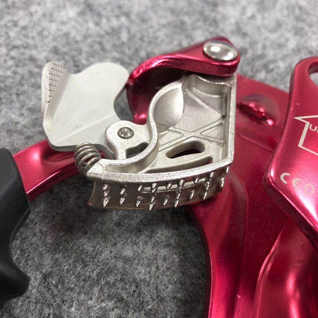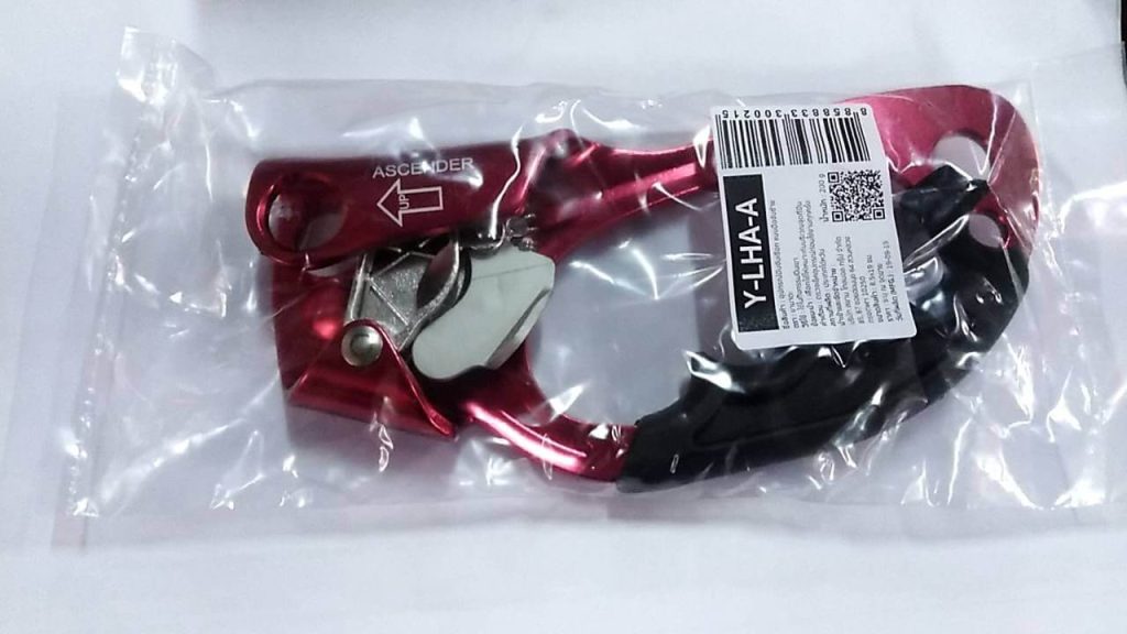 - อุปกรณ์จับเชือก เป็นอุปกรณ์ช่วยในการไต่ขึ้นทางดิ่ง ใช้บีบจับเพื่อไต่ขึ้นไปตามเชือก