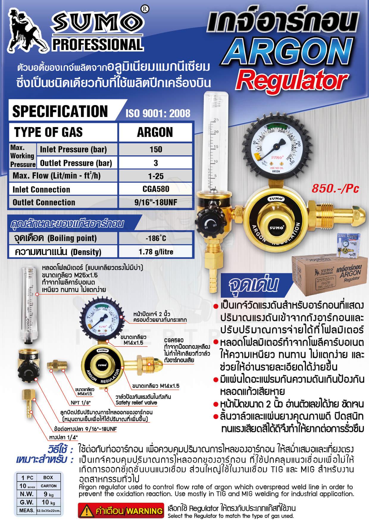 เกจ์ปรับแรงดันลมอาร์กอน SUMO
