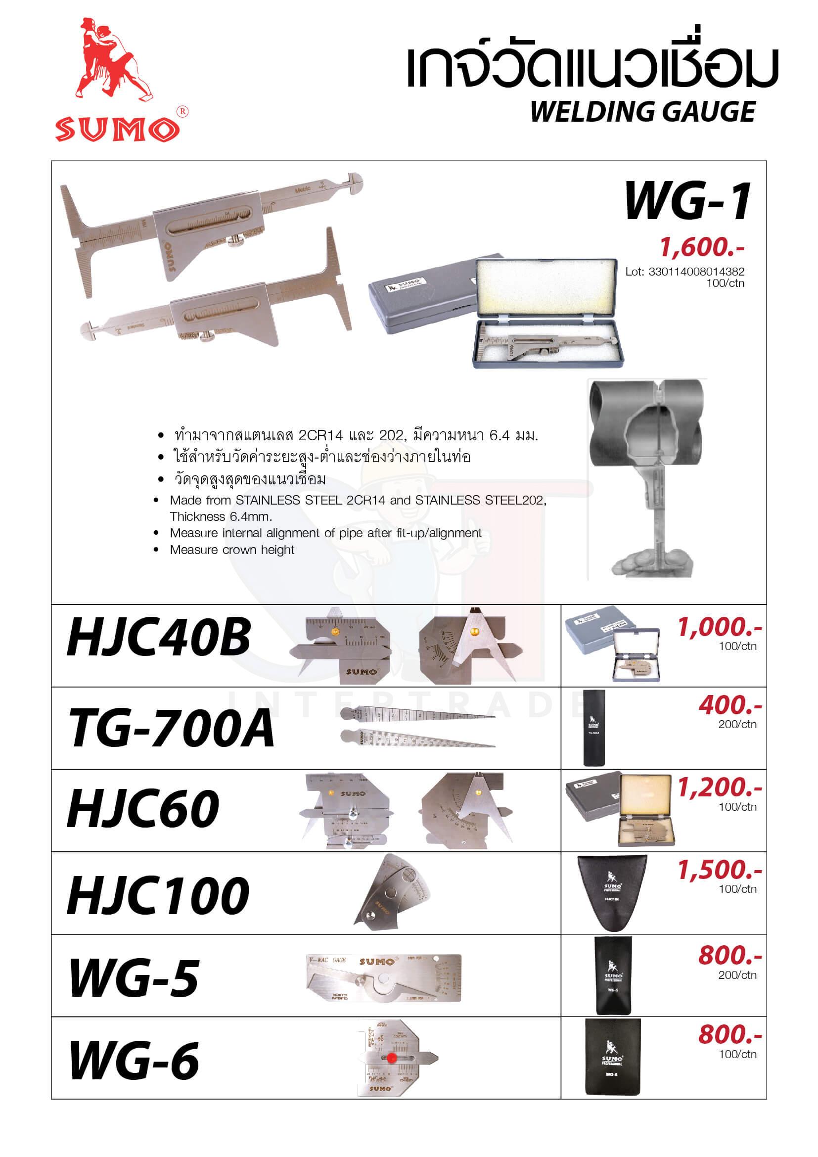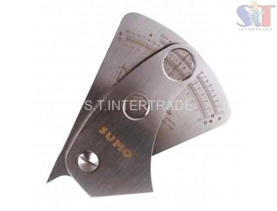 ผลิตจากสแตนเลส ใช้สำหรับวัดมุมโค้ง, วัดความกว้างและความสูงของรอยต่องานเชื่อม, วัดรอยนูนและรอยเว้าของแนวเชื่อม ขอบภายในของท่อและแผ่นโลหะ สามารถวัดช่องว่างระหว่างชิ้นส่วนโลหะ ช่วยให้วัดค่าได้อย่างรวดเร็วและถูกต้องแม่นยำมากที่สุด ขนาดและตัวเลขจะถูกฝังลงในพื้นผิวของเกจ์วัดแนวเชื่อม เพื่อความชัดเจนและง่ายต่อการอ่านของผู้ใช้