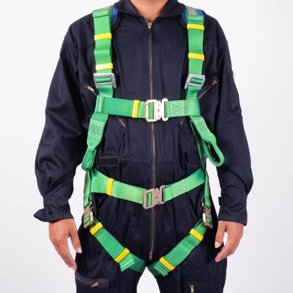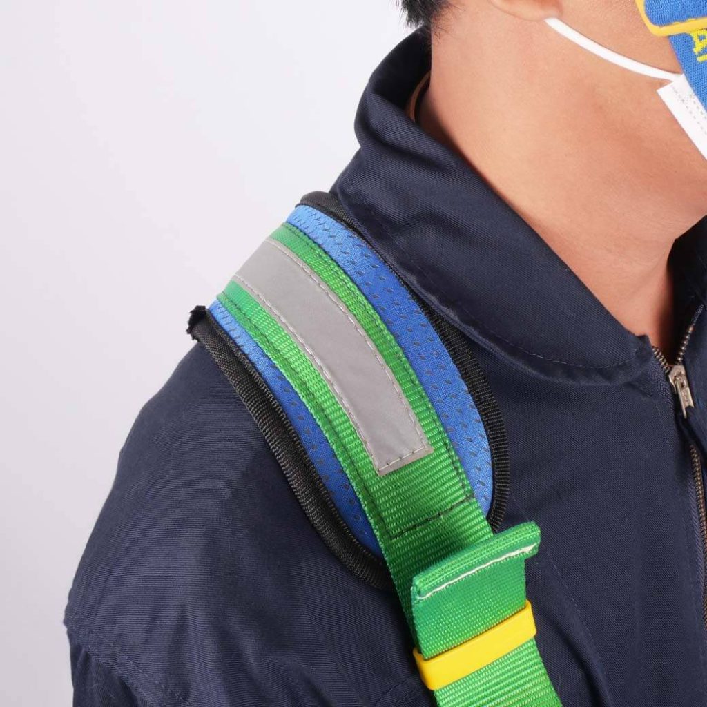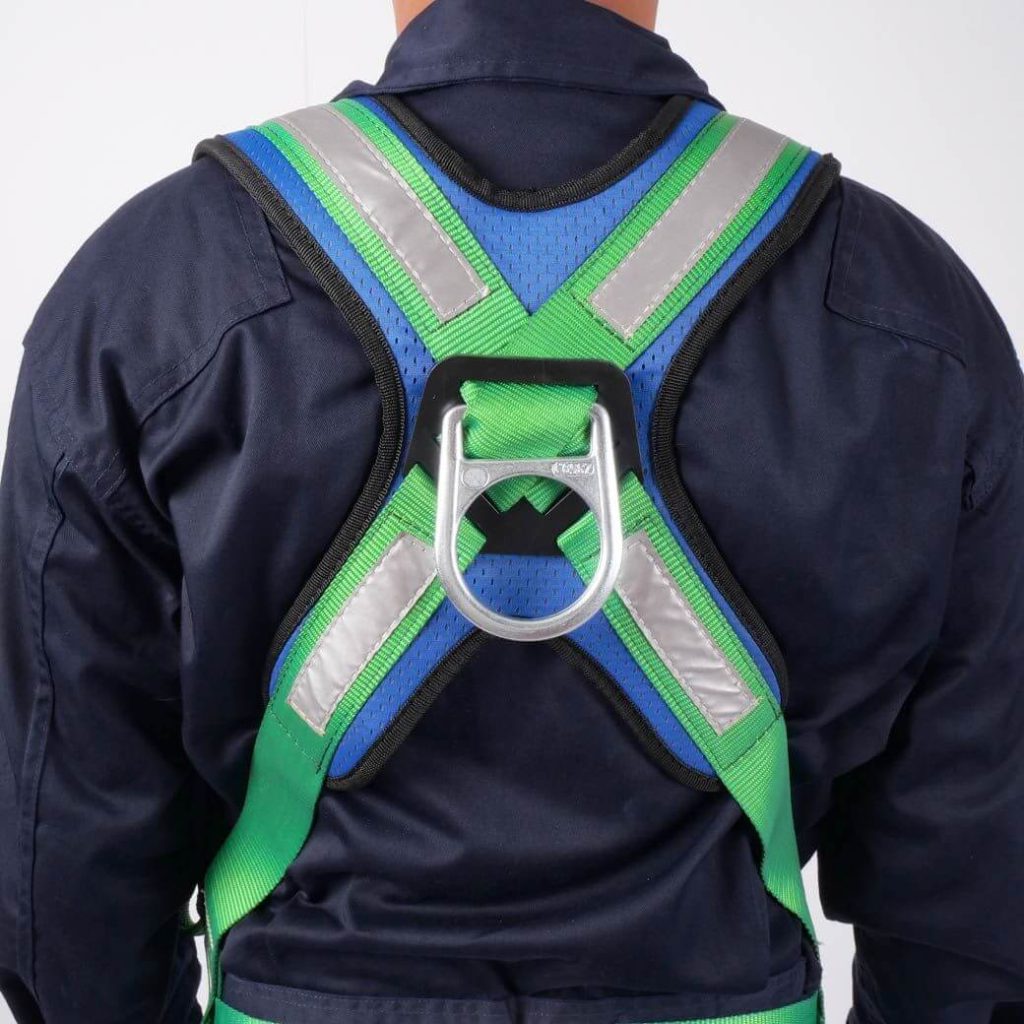 - D-ring of full body safety harness set is at the back for protecting from general fall.