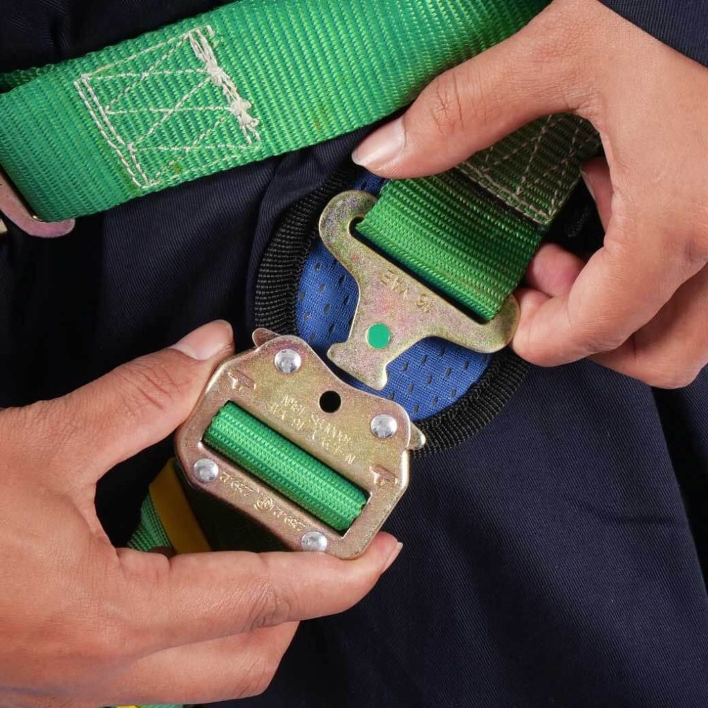 - Comfortable Pad บริเวณต้นขา ช่วยรองรับน้ำหนัก ให้ความรู้สึกสบายต่อการปฏิบัติงานได้ตลอดทั้งวัน และหากตกจากที่สูง สายเข็มขัดก็จะไม่รัดต้นขาจนเกินไป ช่วยลดอาการบาดเจ็บได้