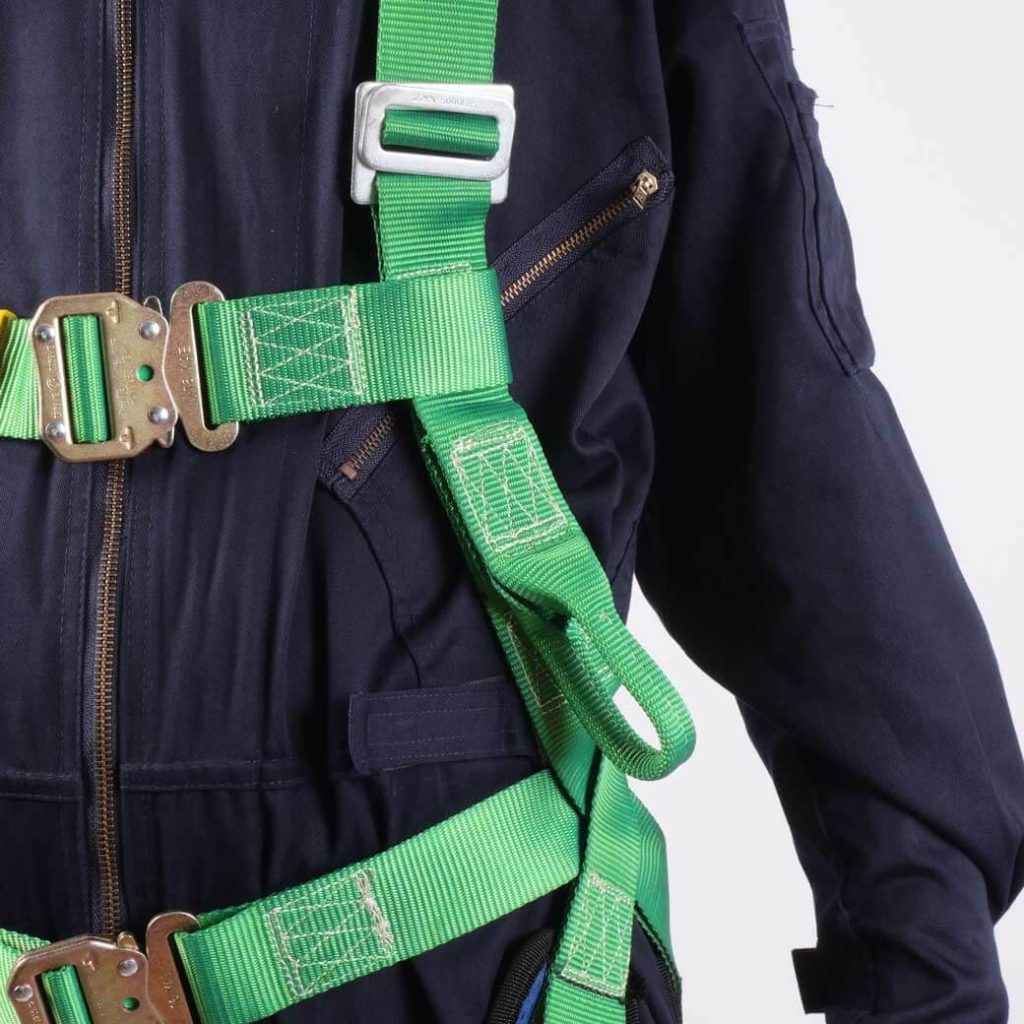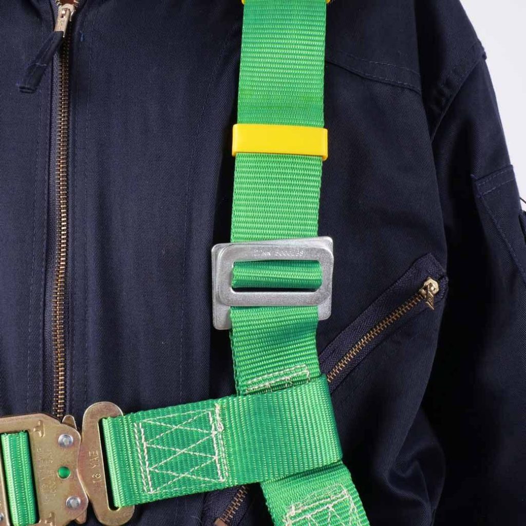 - Rescue Loop บริเวณหน้าอกสำหรับคล้องห่วงนิรภัย เพื่อใช้งานในลักษณะการดึงจากด้านหน้า เช่น เดินบริเวณทางลาดเอียงบนหลังคา ปีนไต่บันได และงานกู้ภัย เป็นต้น