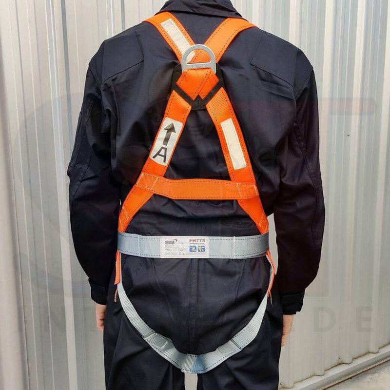 - Back D-ring 1 จุด บริเวณด้านหลัง รับน้ำหนักได้มากถึง 22.3 kN/5000 lbs จัดอยู่ในกลุ่ม A สำหรับงานกันตกจากที่สูงทั่วไป และงานกู้ภัยต่างๆ