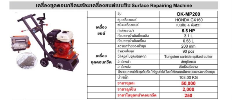 เครื่องขูดคอนกรีตพร้อมเครื่องยนต์ รุ่น OK-MP200