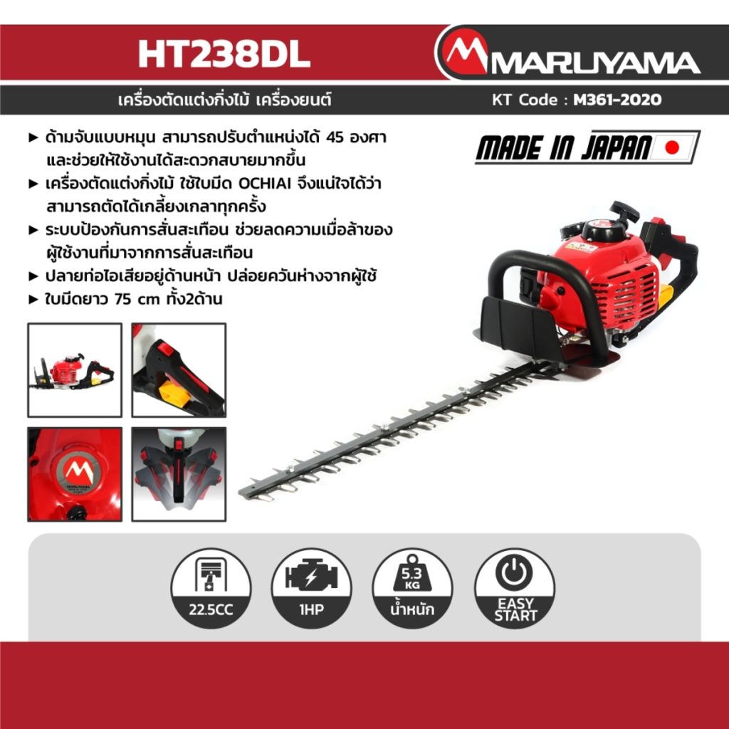 MARUYAMA เครื่องตัดแต่งพุ่มไม้ 2 จังหวะ 22.5 ซีซี รุ่น HT238DL สตาร์ทเบา (Reverse Start) กำลังเครื่องยนต์ 0.77 กิโลวัตต์ ความยาวใบมีด 75 ซม. (มารูยาม่า)
